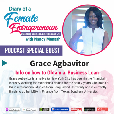 In this episode, Grace shares her in depth, professional expertise with us about how to obtain a business loan. She shares information that is vital to any entrepreneur seeking to acquire a loan. Listen to this and gain industry knowledge on this topic for your business.